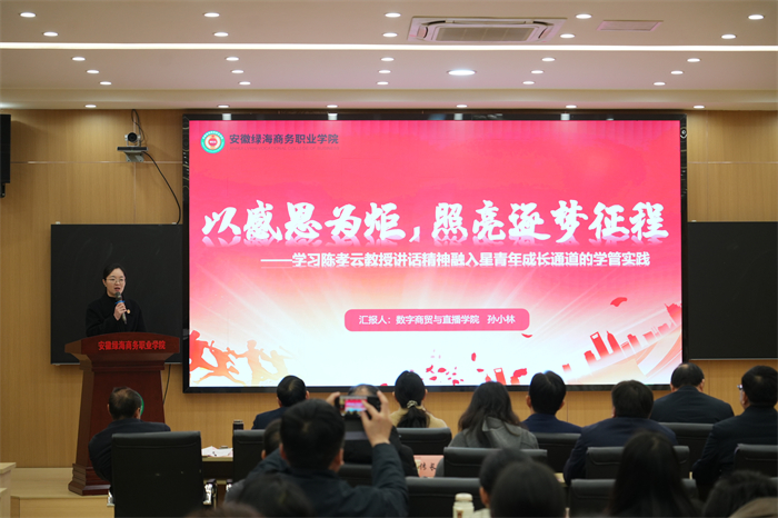 为深入贯彻星青年文化育人精神,扎实推进学管干部队伍建设,提升星青年导师的职业能力与服务水平,12月11日上午,安徽绿海商务职业学院在科创馆二楼会议室举办学管干部“国旗下宣讲”比赛。星青年国际集团董事长、吉隆坡科技大学董事局主席、安徽绿海商务职业学院董事长陈孝云教授亲临现场指导,5名校党政领导担任比赛评委,各行政处室和二级学院负责人,全体专兼职辅导员齐聚一堂,共同观摩这场内涵深刻的育人理念与实践交流会。